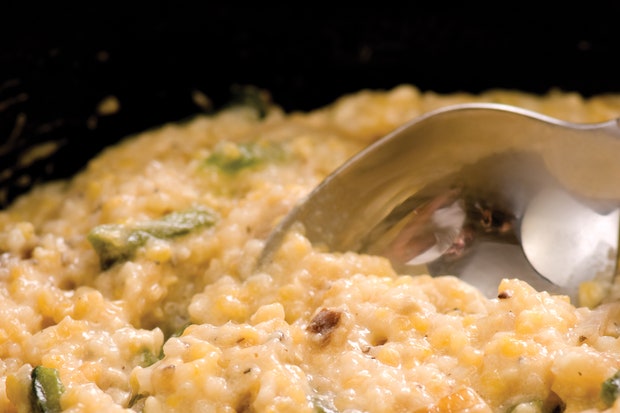 Тем временем варите колбасу в 1 столовой ложке масла в 12-дюймовой антипригарной сковороде на сильном огне, периодически помешивая и разбивая любые крупные кусочки, пока она не перестанет быть розовой. Переложить шумовкой в миску, оставив жир на сковороде.