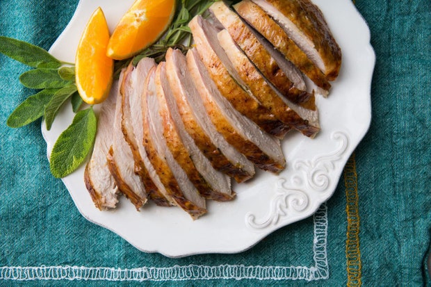 Разогрейте духовку до 350°F. Проткните сладкий картофель вилкой; жарьте до готовности, от 1 до 1 1/2 часа, в зависимости от ширины картофеля. Круто. Разрежьте картофель пополам и зачерпните мякоть в мини-комбайн; пюре взбейте до однородной массы. Отмерьте 1 стакан пюре (оставьте любое оставшееся пюре для другого использования). Поддерживайте температуру в духовке.