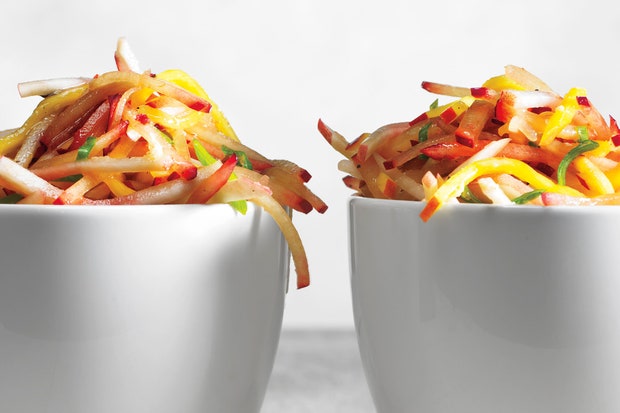 На следующий день поставьте большую сковороду на средний огонь. Как только она нагреется, добавьте свинину, работая порциями, чтобы не переполнять кастрюлю и не оставлять никакой жидкости в миске. Готовьте, периодически помешивая и переворачивая мясо, пока оно не станет слегка карамелизованным и золотисто-коричневым с обеих сторон, около 10 минут. (Если вы переполните сковороду, мясо будет париться, а не обжигаться.) Переложить на блюдо.