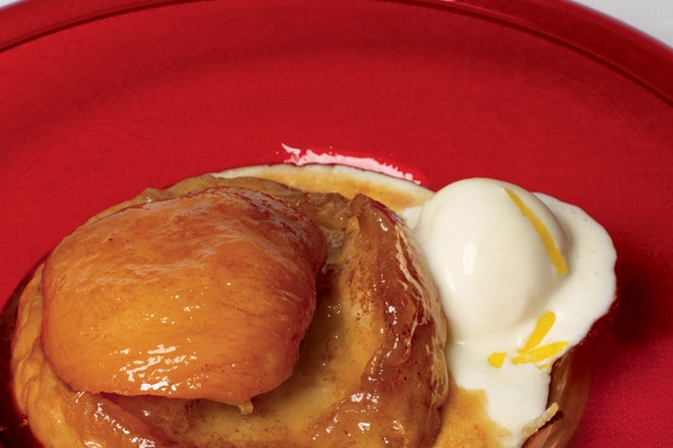 Варите персики в большой кастрюле с кипящей водой 1 минуту, затем погрузите в ледяную воду. Соскальзывают шкуры. Нарежьте на 1/4" клинья.