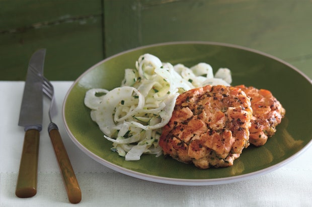 Приправьте курицу щедро солью и перцем и добавьте в горячее масло, кожей вниз. Обжаривайте, перевернув один раз, пока не подрумянится с обеих сторон и жир не загустеет, около 5 минут.