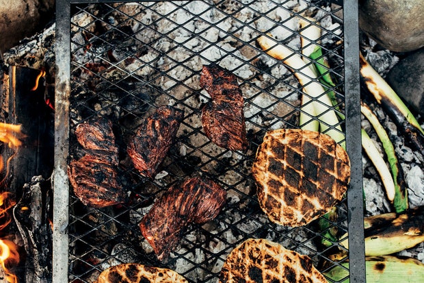 Свиная вырезка с куркумой, тыквой и салатом из капусты