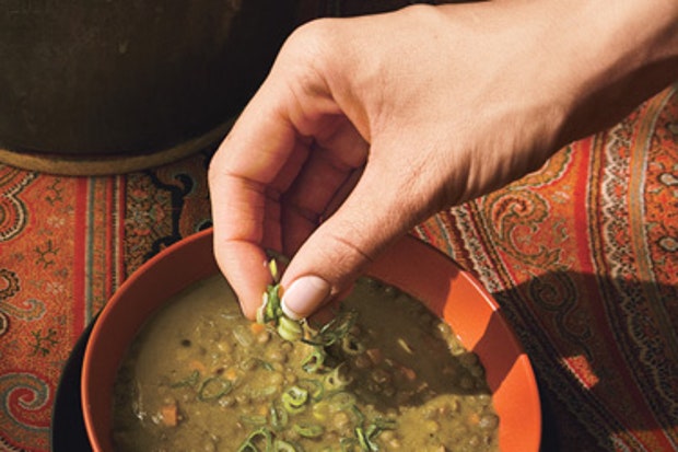 - Эстрагон-кинза сальса верде, Самбал-апельсиновый винегрет и чоризо-лимонное масло, для сервировки