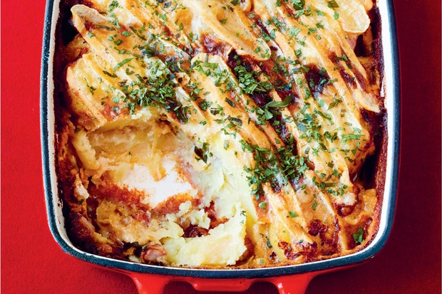 Их частично готовят, сначала перемалывая, а затем запекая, где они великолепно раздуваются, прежде чем успокоиться, ожидая, когда их зачерпнут из-под одеяла из коричневого сыра. Это довольно сытное блюдо; подавайте его с простым зеленым салатом.