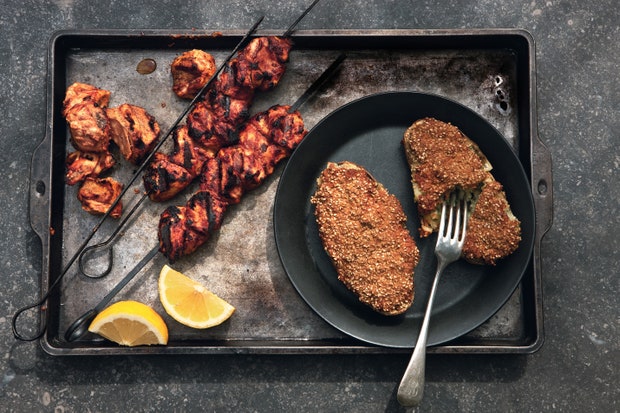 Взбейте вместе уксус, горчицу, тимьян, чеснок и по 1/2 чайной ложки кошерной соли и перца, затем взбейте в масле медленной струей до получения однородной массы.