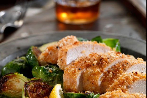 Разогрейте духовку до 350°F. Взбейте 5 больших яичных белков, 1/2 стакана сахара, 1 чайную ложку листьев тимьяна, 1/2 чайной ложки молотого душистого перца, 1/2 чайной ложки молотого имбиря, 1/4 чайной ложки кайенского перца и 4 капли горькой Ангостуры в средней миске. Сложите в 1 фунт несоленые, очищенные от скорлупы сырые натуральные фисташки. Выложить на ободчатый противень, смазанный растительным маслом. Выпекать, помешивая каждые 10 минут, до золотисто-коричневого цвета и начиная хрустеть, 30-35 минут. Дайте остыть на листе на проволочной решетке (орехи будут хрустеть, когда они остынут).
