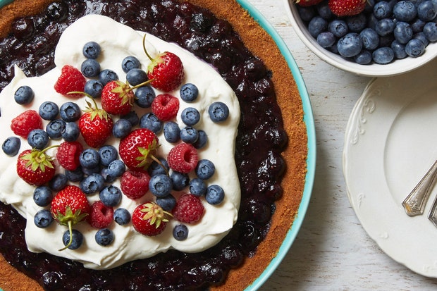 Выпекайте торт до тех пор, пока корочка не станет темно-золотистой и корочка не начнет отделяться от стенок сковороды (верхняя корочка может треснуть), около 1 часа. Охладить в кастрюле на решетке не менее 2 часов. Осторожно выньте края из сковороды для пирога. Переложить на блюдо. Посыпать сахарной пудрой. Нарезать на дольки. Подавать со взбитыми сливками.
