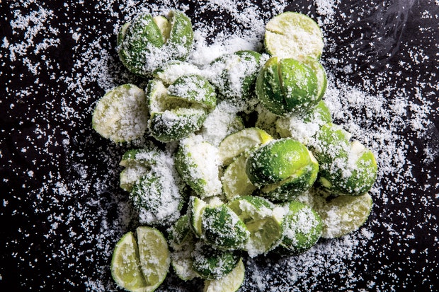 - 1 фунт смешанных лесных грибов (таких как шиитаке, майтаке и/или устрица), древесные стебли удалены
