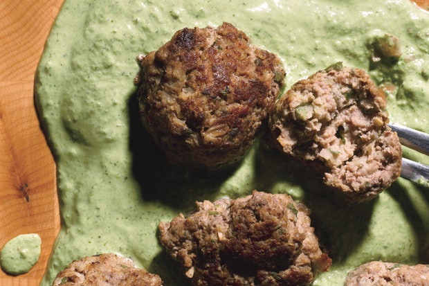 Сформируйте из свиной смеси столовые ложки в котлеты диаметром от 1 1/4 до 1 1/2 дюйма и выложите на противень. Сделать вперед: можно сделать на 6 часов вперед. Накрыть крышкой и охладить.