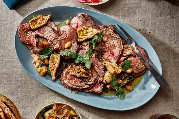 Жареная свекла с хрустящими артишоками и маринованным апельсиново-имбирным пюре