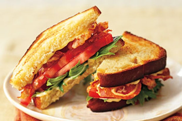 Сэндвичи с панчеттой, Мизуной и помидорами с зеленым чесноком айоли
