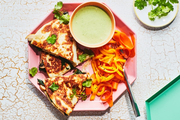 Куриные и грибные кесадильи с морковью и манговым салатом