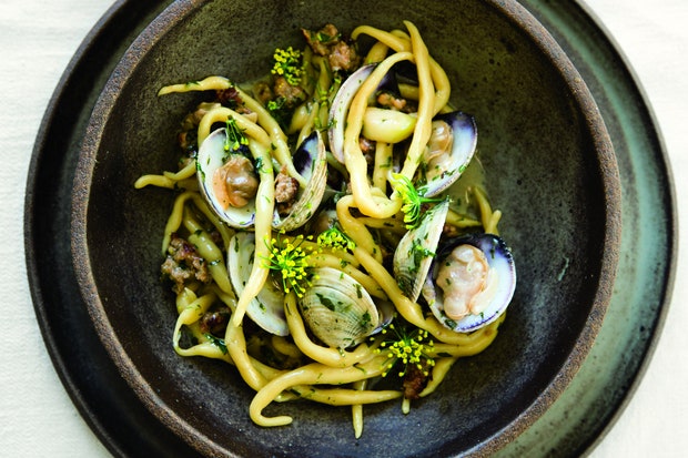 Свежая Паста С Моллюсками И Горячей Итальянской Колбасой