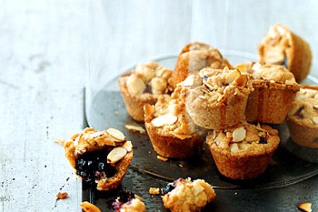 Миндальная глазированная выпечка со взбитыми сливками и ягодами