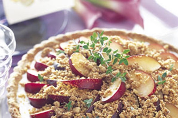 Сливовый пирог с козьим сыром и грецким орехом-тимьяном штрейзель