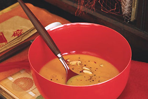 Суп из цветной капусты с обжаренными гребешками, лимонным маслом и американской икрой
