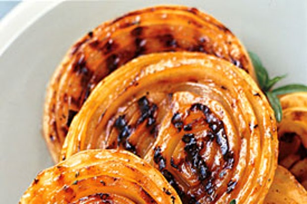 Луковые стейки барбекю с медово-горчичным соусом