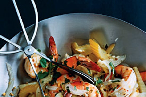 Креветки в мятном маринаде с Табуле, помидорами и фетой