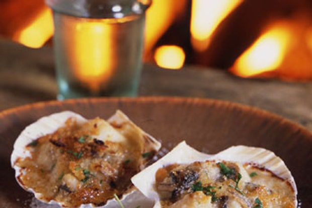 Обжаренные морские гребешки с тмином и цветной капустой и луком-пореем