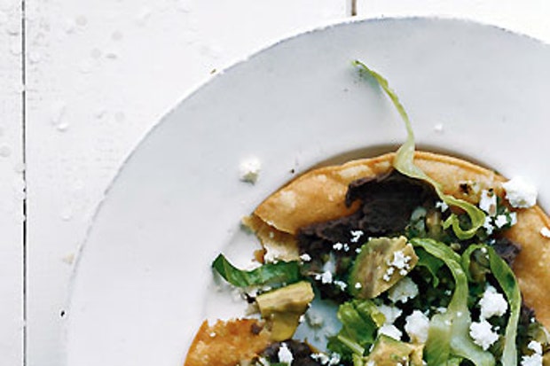 Тартар из тунца и авокадо с калифорнийской икрой на кунжутных чипсах Вонтон