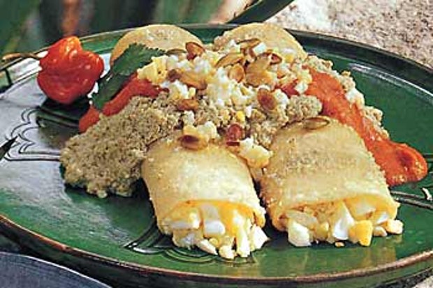 Яичные тако с соусами из тыквенных семечек и помидоров Хабанеро