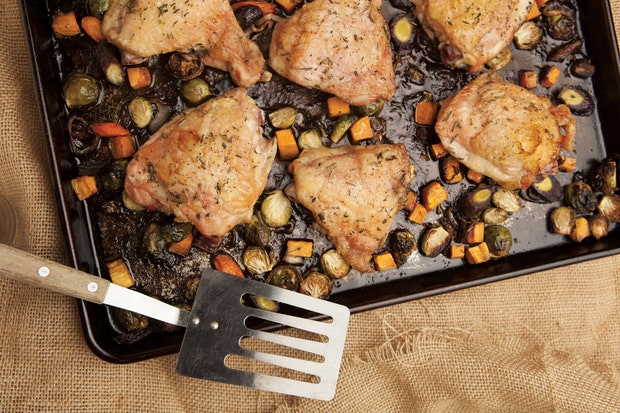 Жареные куриные бедра с овощами