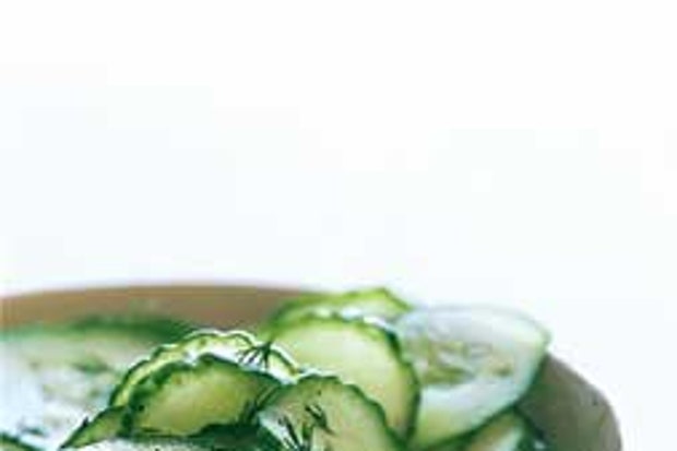 Нарезанный салат из огурца, красного лука, лимона и петрушки