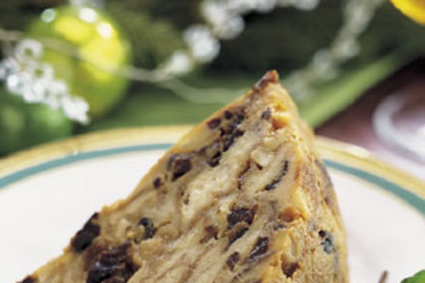 Рождественский круассан пудинг со сметаной и коричневым сахарным соусом