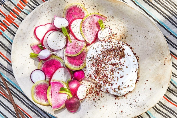 Курица-гриль с имбирем и редисом с заправкой из мисо-лука