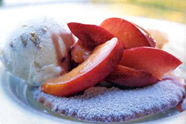 Кукурузная мука-печенье-мороженое с теплыми фруктами