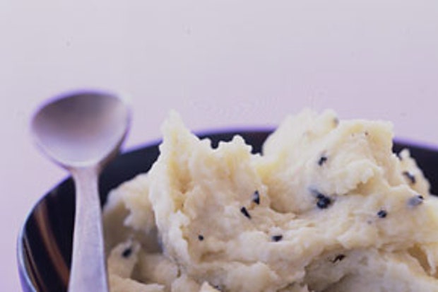 Жареный морской окунь с шафрановым томатным соусом и пюре из сельдерея
