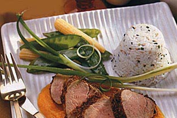 Свиная вырезка с кориандром и морковно-имбирным соусом