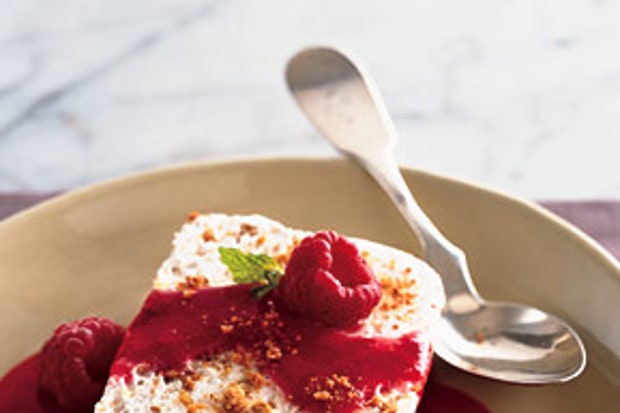 Лимон и Амаретти Семифреддо с малиновым соусом
