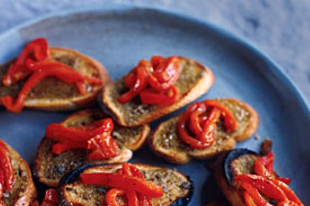 Тосты с анчоусами и фенхелем с жареным красным перцем