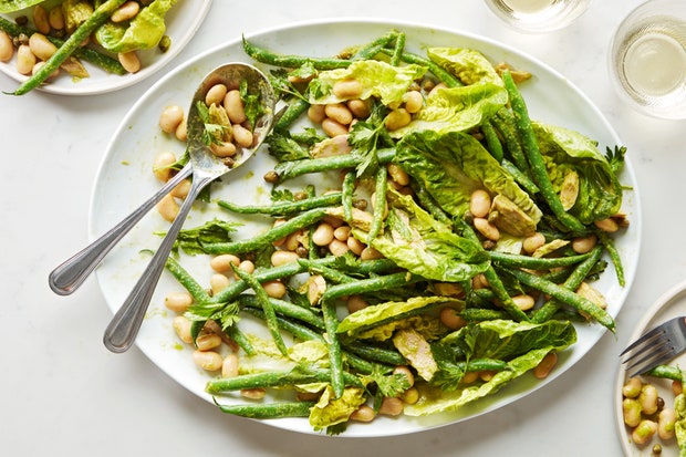 Салат из зеленой фасоли и тунца с заправкой из базилика