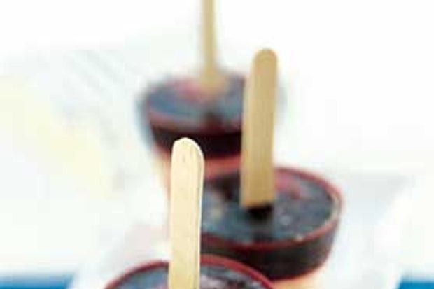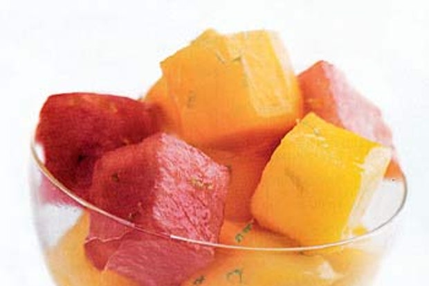 Купе из дыни и черники с белым вином, ванилью и мятой