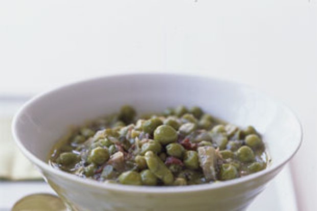 Тушеное мясо из фасоли, гороха и артишоков