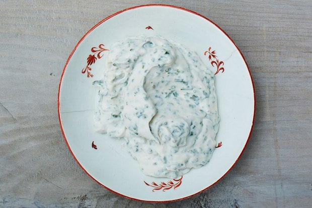 Хрустящая куриная шкурка с укропно - чесночным соусом