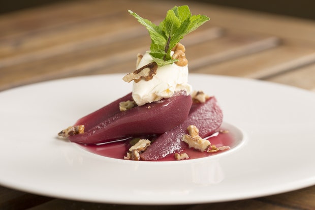 Каре ягненка с сушеной вишней и соусом из зеленого перца