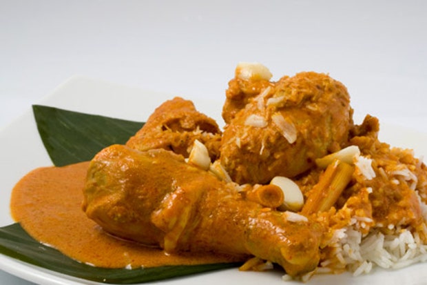 Тушеное филе палтуса в кокосе и лимоннике с копчеными баклажанами и помидорами имбирный чатни