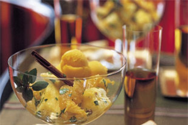 Кардамонный йогуртовый пудинг с апельсиновым и коричным медовым сиропом