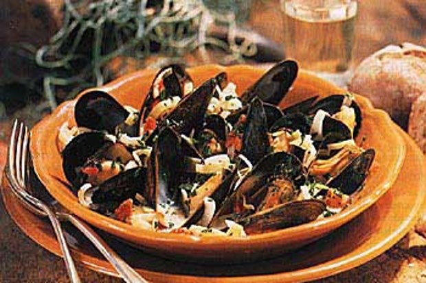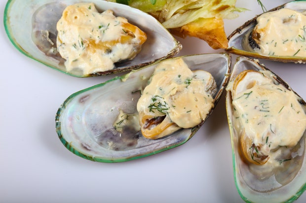 Охлажденный крем-суп из кабачков с мидиями и свежей мятой