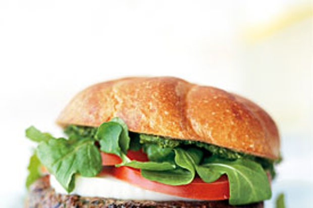 Бургеры с моцареллой и шпинатом-песто из рукколы