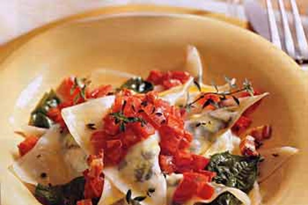 Козий сыр-Руккола равиоли с томатно-панчетта масло