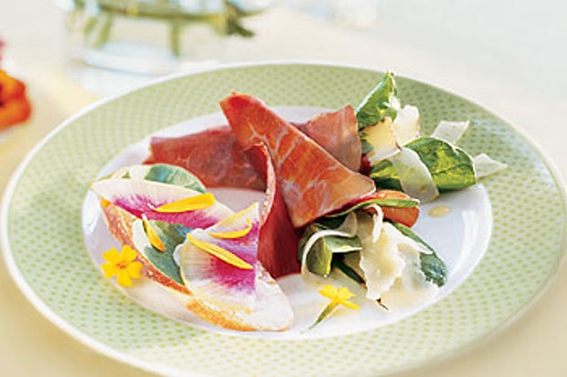 Салат из рукколы и копченой моцареллы с лимонным винегретом