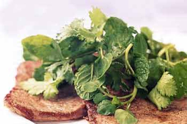 Говяжьи Пайяры с кресс-салатом и травяным салатом