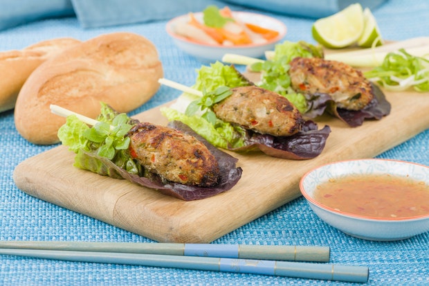 Вьетнамские оладьи из креветок и крабов с соусом чили-лайм