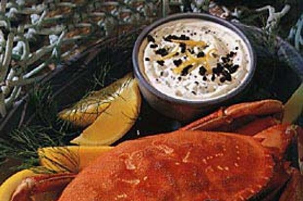 Крабовые лепешки и детская зелень с лимонным винегретом