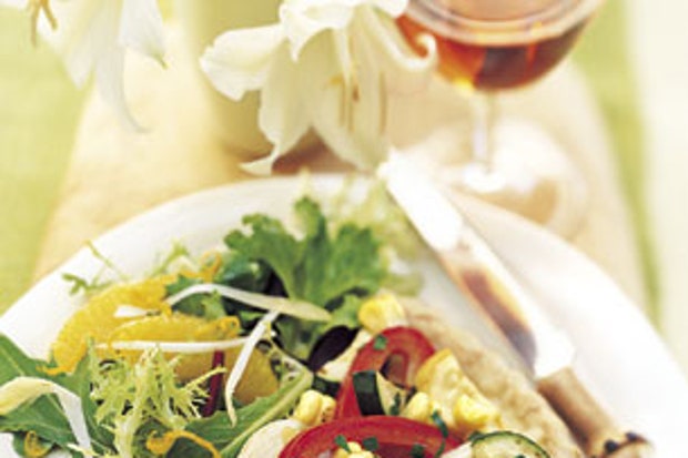 Салат из Рататуя и козьего сыра с соусом песто винегрет