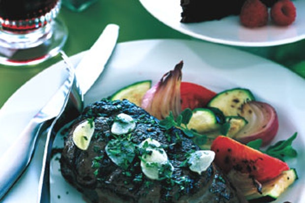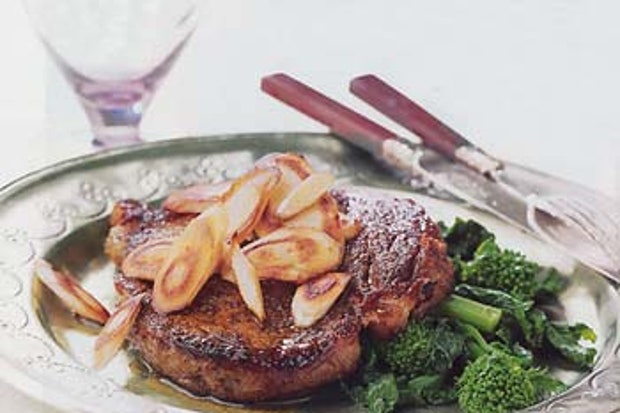 Стейки из ребрышек с жареным красным перцем и бальзамическим уксусом